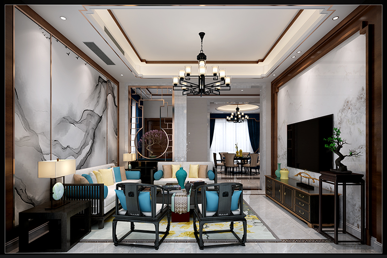 六安碧桂园天玺别墅新中式风格装修效果图